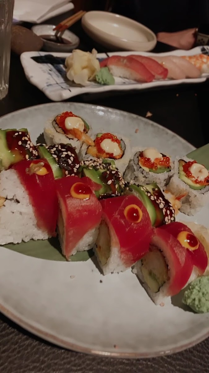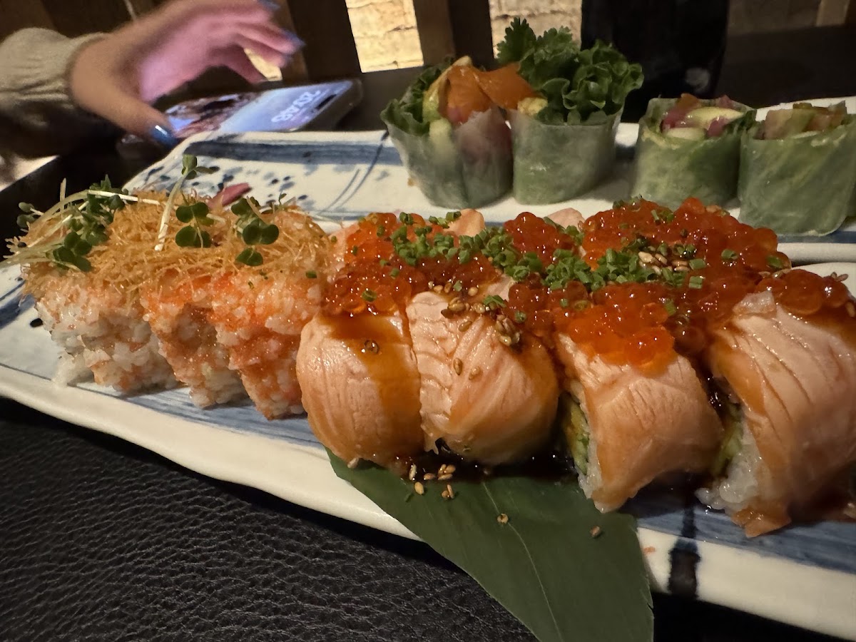 The main menu also boasts innovative creations like the Spicy Tuna roll, a delightful combination of tuna, cucumber, spicy sauce, and herbs, offering a pop of flavor that dances on the palate. For those seeking something hearty, the Duck, Salmon & Friends section delivers delights like the Ebi Panko—a crispy tempura shrimp enhanced with avocado, perfectly balancing crunch and creaminess, and the PINK ALASKA, combining succulent salmon with cream cheese and lumpfish roe, which creates lovely layers of flavor and texture.